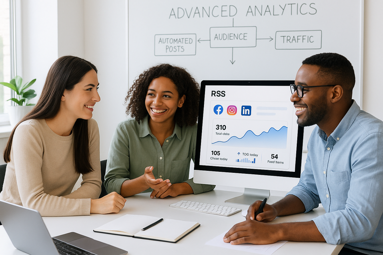 Verbinden Sie einen beliebigen RSS-Feed, um automatisch neue Inhalte auf allen Ihren sozialen Kanälen abzurufen, zu planen und zu veröffentlichen. Halten Sie Ihre Profile mühelos mit Neuigkeiten, Blogbeiträgen oder Updates von jeder Website aktiv – immer auf dem neuesten Stand, auch wenn Sie offline sind.